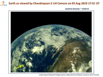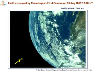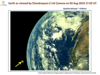 3 августа «Чандраян-2» сделал первые снимки Земли, выполненные с помощью камеры LI4 посадочного аппарата «Викрам», при пролёте в нескольких тысячах километров на поверхностью[41][42].
