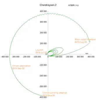 - ↑ Chandrayaan-2 update: Fourth Lunar Orbit Maneuver (англ.). ISRO (30 августа 2019). Дата обращения: 1 сентября 2019. Архивировано из оригинала 3 сентября 2019 года.