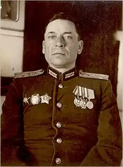 | Командовал | 447-й Краснознамённый Рославльский пушечный артиллерийский полк, 4-я тяжёлая пушечная артиллерийская бригада |