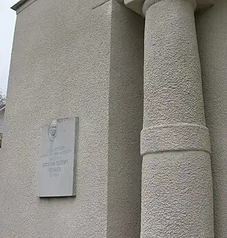 Мемориальная доска П. Л. Чебышёву на стене Преображенской церкви в селе Спас-Прогнанье ныне Калужской области