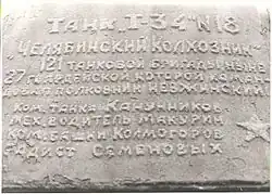 | Танк Т-34 «Челябинский колхозник», установленный в честь соединения в январе 1943 г. 21-й армии Донского фронта с 62-й армией Сталинградского фронта | |