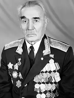 - ↑ Награжден в соответствии с Указом Президиума Верховного Совета СССР от 04.06.1944 «О награждении орденами и медалями за выслугу лет в Красной Армии»