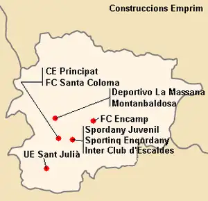 В дебютном чемпионате Андорры приняло участие 10 команд. На данный момент 5 из 10 клубов прекратили существование.