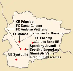 Число участников чемпионата Андорры было увеличено по сравнению с предыдущим сезоном 1995/96 с 10 до 12. В турнире дебютировало 3 команды. На данный момент 8 из 12 клубов прекратили существование.