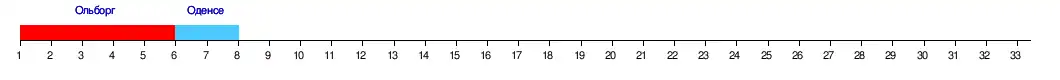 | Оденсе | 2:1 | 1:4 | 2:0 | 2:1 | 3:1 | 2:4 | ||||||
