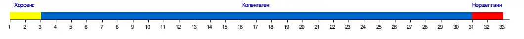 | 2 | Копенгаген | 33 | 19 | 9 | 5 | 55 − 26 | +29 | 66 | Квалификация Лиги чемпионов |