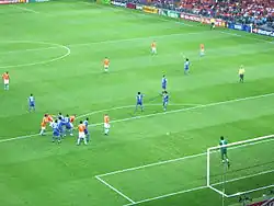 - ↑ В четвертьфинале судья принял решение показать вторую за матч жёлтую карточку Денису Колодину, однако через некоторое время отменил своё решение по сигналу бокового арбитра, так как мяч ранее покинул поле.