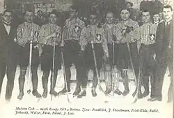 - ↑ Championnats d'Europe 1914 (фр.). Hockeyarchives.info. Дата обращения: 31 января 2013. Архивировано 2 февраля 2013 года.