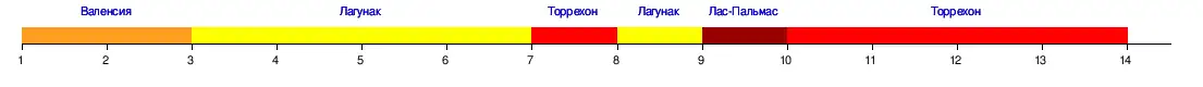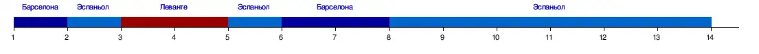 - «Эспаньол», с 9 тур первого этапа по 10 тур второго этапа