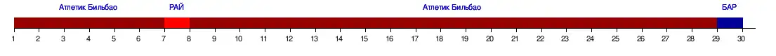 | Атлетик Бильбао | 1 | 1 | 1 | 1 | 1 | 1 | 2 | 1 | 1 | 1 | 1 | 1 | 1 | 1 | 1 | 1 | 1 | 1 | 1 | 1 | 1 | 1 | 1 | 1 | 1 | 1 | 1 | 1 | 1 | 2 |