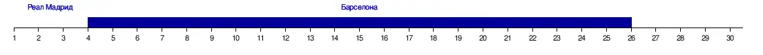 | Реал Мадрид | 1 | 1 | 1 | 2 | 2 | 2 | 2 | 2 | 2 | 2 | 2 | 2 | 2 | 2 | 2 | 2 | 2 | 2 | 2 | 2 | 2 | 2 | 2 | 2 | 2 | 2 | ||||
