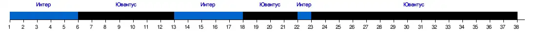 | 1. Интер | — | 1:2 | 1:0 | 0:0 | 1:1 | 1:1 | 2:2 | 2:0 | 3:1 | 1:2 | 2:1 | 4:2 | 1:0 | 3:3 | 0:0 | 2:1 | 4:0 | 6:0 | 4:0 | 2:1 |