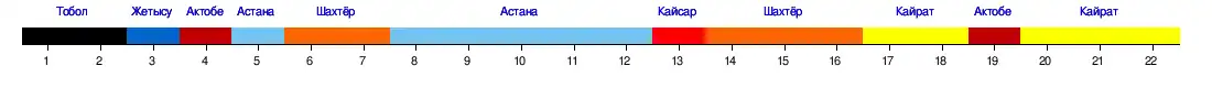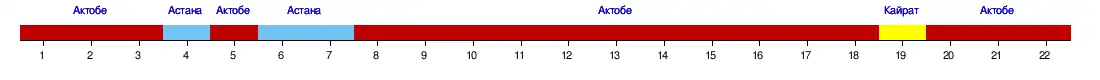 | Актобе | 1 | 2 | 2 | 3 | 3 | 3 | 3 | 3 | 3 | 2 |