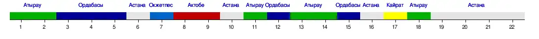 | Атырау | 4 | 4 | 5 | 6 | 6 | 6 | 6 | 6 | 6 | 5 |