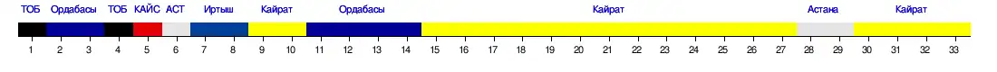 | Астана | П | Н | В | В | В | В | В | В | В | Н | Н | В | В | В | П | В | В | В | В | В | В | В | В | В | В | В | Н | В | В | П | В | П | В |