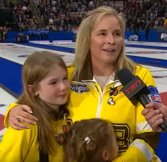 - ↑ Jones to focus on family after final Scotties appearance. TSN. Архивировано 16 февраля 2024. Дата обращения: 16 февраля 2024.