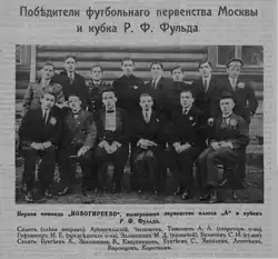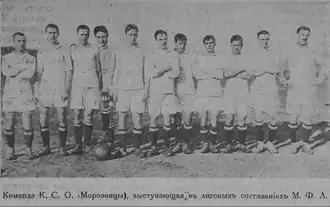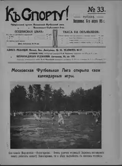 - ↑ Калянов Архивная копия от 17 октября 2021 на Wayback Machine — с.68; «Время» за 10 мая 1916 года; «Къ Спорту!» за 15 мая 1916 года; Лукосяк Ю. «Футбол: первые шаги, 1860—1923» Архивная копия от 29 июля 2021 на Wayback Machine — с.65, 127