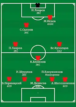 | ОЛЛС: Мохов - М.Исаев, Шмидт - Пенязев, Н.Майтов, Готбот - Вл.Гроссе, В.Григорьев, Вен.Гроссе, Жибоедов, Кутель Физическое воспитание: А.Мигунов - Мигунов-III, С.Егоров - Покидышев, Лепорский, Королев - Круглов, Решетов, В.Гридин, А.Холин, Бондарюк |