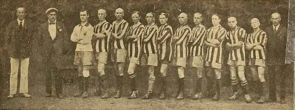 - ↑ Решением Лиги матч был назначен к переигровке по следующим соображениям: на скользком от дождя поле рефери "... не мог достаточно быстро бегать", и, находясь вдалеке от игровой ситуации, засчитал один из голов «Унитаса», которого на самом деле не было (как выяснилось впоследствии после опроса помошников судьи ("флаговых") и игроков команд)[13].