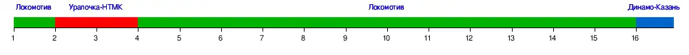 | 1. «Динамо-Казань» (Казань) | 16 | 14 | 2 | 9 | 4 | 1 | 1 | 0 | 1 | 44:12 | 42 |