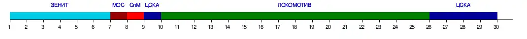 | Локомотив | 4 | 3 | 6 | 5 | 5 | 7 | 6 | 4 | 3 | 1 | 1 | 1 | 1 | 1 | 1 | 1 | 1 | 1 | 1 | 1 | 1 | 1 | 1 | 1 | 1 | 2 | 2 | 3 | 2 | 3 |