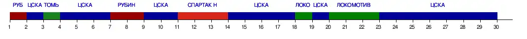 | ЦСКА | 3 | 1 | 2 | 1 | 1 | 1 | 3 | 2 | 1 | 1 | 3 | 3 | 4 | 1 | 1 | 1 | 1 | 2 | 1 | 2 | 2 | 2 | 1 | 1 | 1 | 1 | 1 | 1 | 1 | 1 |