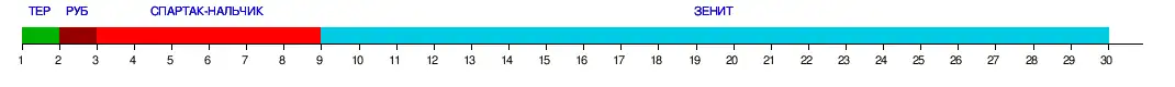 | Зенит | 5 | 3 | 3 | 2 | 1 | 2 | 2 | 2 | 1 | 1 | 1 | 1 | 1 | 1 | 1 | 1 | 1 | 1 | 1 | 1 | 1 | 1 | 1 | 1 | 1 | 1 | 1 | 1 | 1 | 1 |