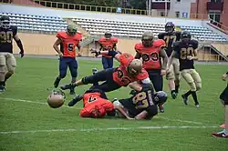 - ↑ Григоров, Александр. В Харькове состоялся матч топ-лиги Украины по американскому футболу (видео). objectiv.tv (4 июня 2018). Дата обращения: 23 февраля 2025.