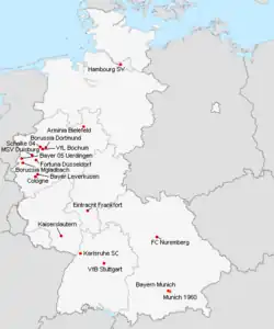 | 8. Кёльн | 0:3 | 0:3 | 3:1 | 2:2 | 5:0 | 2:3 | 2:1 | 2:2 | 4:0 | 1:1 | 1:0 | 1:2 | 2:2 | 1:0 | 4:1 | 0:2 | 3:0 | |