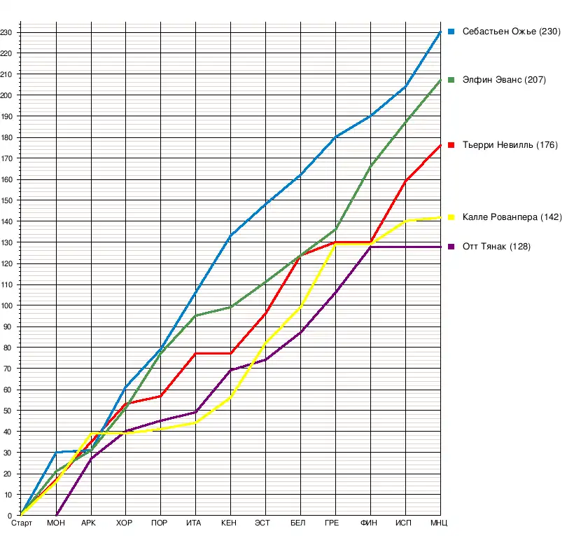 | Этап | Ралли | Подиум | Статистика | ||||||