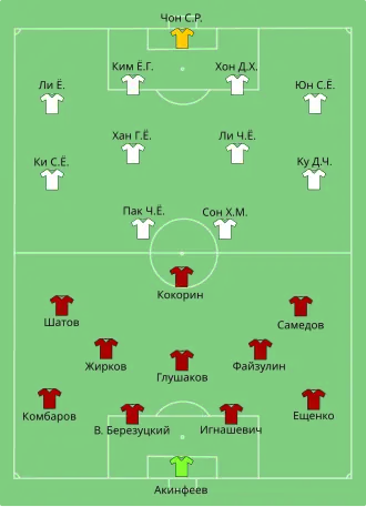- ↑ Лиассин Кадамуро-Бентаиба получил предупреждение за неспортивное поведение, находясь на скамейке запасных.