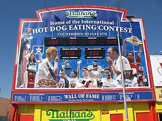 Конкурс по поеданию хот-догов проводится ежегодно в Кони-Айленде (Нью-Йорк) с 1972 года, однако организатор мероприятия Nathan’s Famous утверждает, что первый чемпионат прошёл в 1916 году.