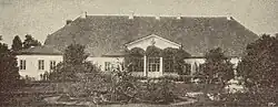 Старый «итальянский» регулярный парк был обнесен высокой каменной оградой с воротами. На дворе находился круглый газон с цветочными клумбами. В парке стояли часовня, две видовые башни. Кроме этого, усадебный комплекс включал флигели, хозяйственные здания, конюшню с возовней, трехъярусную сокровищницу, накрытую гонтовой крышей, завершенным куполом.