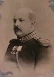 За то, что отважно штурмовал вверенным ему полком 11 октября 1914 года, дер. Казимерж, занял важную у этой деревни позицию и захватил 12 неприятельских орудий и 6 пулеметов.