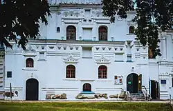 В 1700—1702 гг. над западной частью корпуса была возведена двухъярусная башня-колокольня. Нижний ярус предназначался для звонов, в верхнем размещалась церковь Иоанна Богослова. В это же время ведется строительство и всей восточной части корпуса со вторым этажом, надстроенным над трапезной. Здесь разместились большой трапезный зал и церковь «Всех святых».
