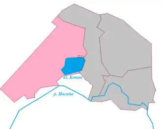 Граничит на востоке с Железнодорожным районом Читы, на границе с которым расположено внутригородское озеро Кенон.