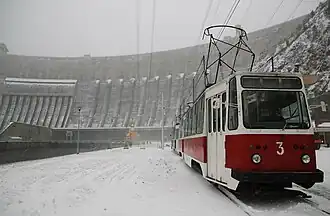 Линия не имеет разворотных колец, разъездов или оборотных тупиков, поэтому пиковые утренний и вечерний рейсы выполняются тремя вагонами, следующими друг за другом[2], то есть одновременно на линию выходят максимум три вагона из шести, чаще одна СМЕ и один одиночный вагон. Средний ремонт производится своими силами на территории трамвайного участка, принадлежащего ОАО «Саяно-Шушенский гидроэнергоремонт». Капитальный ремонт в здании самой Саяно-Шушенской ГЭС.