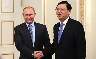 - ↑ Федор Жиров (14 марта 2013). Чжан Дэцзян избран председателем парламента Китая. ИТАР-ТАСС. Архивировано 18 марта 2013. Дата обращения: 15 марта 2013.