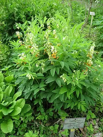 Многолетнее травянистое растение высотой от 20 до 60 см. Стебель прямостоячий, бескрылый, опушённый или голый[3]. Листовая пластинка перистая, без усиков, с четырьмя или пятью парами листочков на рахисе листа. Листочки эллиптические, с нижней стороны волосистые (трихомы), шириной 2-4 см, тупые или коротко заострённые.