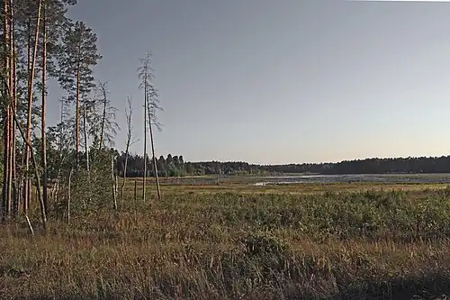 ![]() Вид на озеро с восточного берега летом 2017 г. | |
