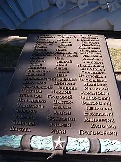 - Имя на памятнике рабочим и служащим комбината «Криворожсталь», павшим на фронтах Великой Отечественной войны 1941—1945 годов.