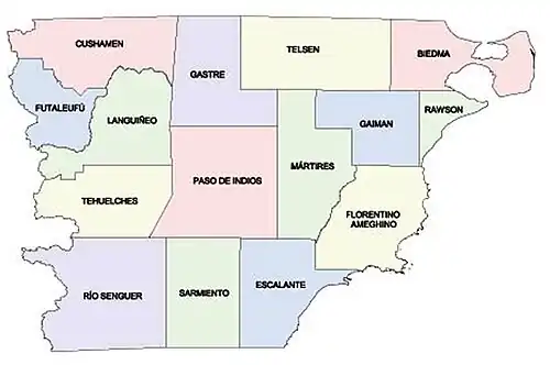- ↑ Chubut (Argentina): Departments & Localities - Population Statistics, Charts and Map. www.citypopulation.de. Дата обращения: 12 декабря 2020. Архивировано 17 января 2021 года.