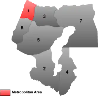 | Включает | 2 городских уезда, 4 уезда, 1 автономный уезд |