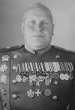 - ↑ О награждении орденами Суворова, Кутузова и Богдана Хмельницкого генералов и офицерского состава Красной Армии // Ведомости Верховного Совета Союза Советских Социалистических Республик. — 1945. — 27 июля (№ 41 (368)). — С. 2.