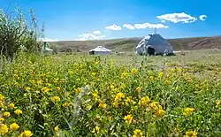 По степи с северо-запада на юго-восток, к границе с Монголией, подходит Чуйский тракт