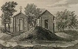 ![]() Вид Успенского Дубненского монастыря в 1765 году. Рисунок М. В. Толстого. | |