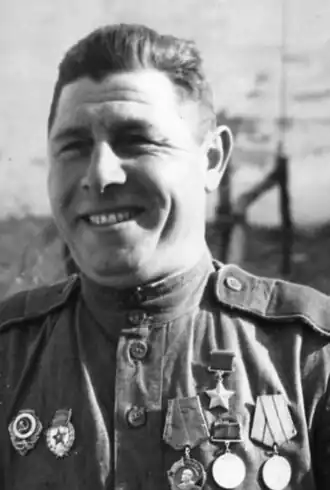 - ↑ Указ Президиума Верховного Совета СССР «О присвоении звания Героя Советского Союза генералам, офицерскому, сержантскому и рядовому составу Красной Армии» от 15 января 1944 года // Ведомости Верховного Совета Союза Советских Социалистических Республик : газета. — 1944. — 23 января (№ 4 (264)). — С. 1. Архивировано 24 сентября 2021 года.