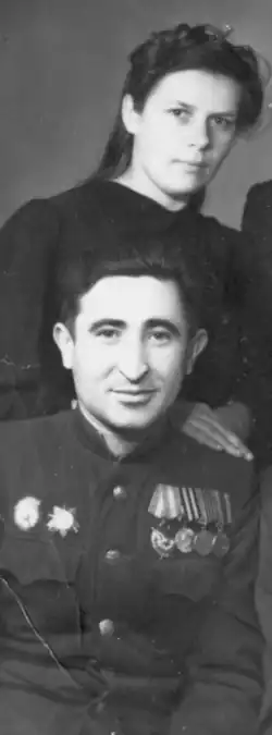 Был женат на Елене Гавриловне Красовской, она во время войны была фельдшером медицинской службы в батальоне, который обслуживал лётные части. Только за 1944-45 годы ею лично была оказана медпомощь 1250 больным, из которых 85 % были из летных частей[6]. Детей не имели.