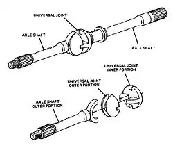 - Спаренные карданные — представляют собой состыкованные друг с другом два карданных шарнира, которые взаимно компенсируют неравномерность вращения друг друга; применялись редко, например, на ряде американских автомобилей 1920-х годов, вроде Miller 91 или Cord L29, а также французских «Панарах» пятидесятых-шестидесятых годов и ГДР-овских Wartburg. В конце 20 века устанавливались на карданные валы американских вседорожников (пример — Jeep). В настоящее время применяются на грузовиках, тракторах, строительной технике, электровагонах метрополитена типов Е, 81-717/714 и др.[5].