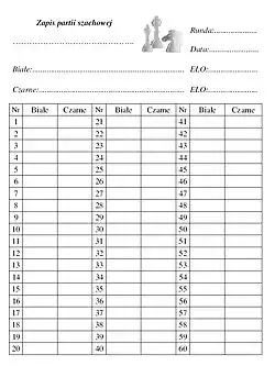- бланк должен соответствовать правилам ФИДЕ (в том числе шахматная нотация, однако буквы разрешается заменять изображениями фигур);